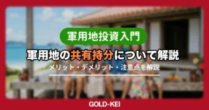 【2026年】軍用地の共有持分は売れる?メリット・デメリットとトラブル回避の出口戦略をプロが解説 親から相続した軍用地が兄弟との共有名義になっていたり、割安な共有持分物件を見つけて投資を検討したりしていませんか?結論から言うと、軍用地の共有持分は単独所有...